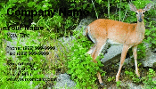 A whitetail deer fawn standing near a stream. **Needs clearer area for text. When there are light and dark areas in the same spot, it causes problems for the text.**
