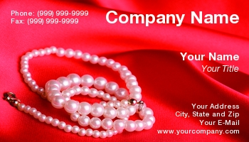 Elegant business card for jeweler with pearls and red background.