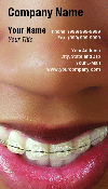 Vertical format image of black womans teeth with braces on upper teeth.