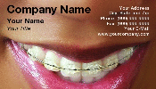 Black womans smile with braces on upper teeth. Horizontal format