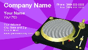 Image is a gold accent DJ turntable on a purple starburst background. Template could be used for DJ's who perform at parties, weddings, or other celebration events.