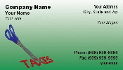 Image is a render of blue handled scissors cutting the word TAXES. Template could be used for business planning or tax preparer interests.