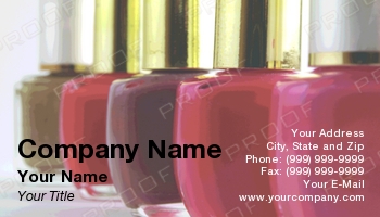 Make-up card with diagonal row of gold, red, brown, fuchsia and pink nail polishes. Good for Mary Kay consultant, Avon consultants, Cosmetic home based business owners and make up artists.