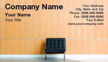Leather chair in front of wooden panels in business lobby.