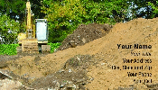An excavator, used for land clearing, earth moving, and digging. This digger is on a site with a pile of moved earth and rocks, preparing the ground for a new house.