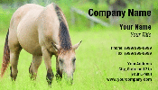 Image is a brown horse with black mane grazing in tall grass in late summer. Template could be used by horse trainers, horse suppliers or other Equestrian interests.