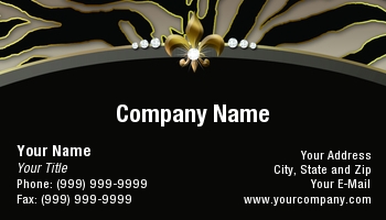 Elegant Fashion jewelry business card (beige and gold) with pretty fleur de lis diamond accent and zebra animal print background great for any fashion boutique, jewellery maker or beauty consultant like a makeup artist.