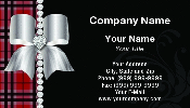Fashion business card with pretty plaid print and row of jewels / diamonds and pretty heart diamond bow great for any fashion clothing retail boutique jewellery maker / jewelry designer makeup artist beauty professional. (red and silver and black)