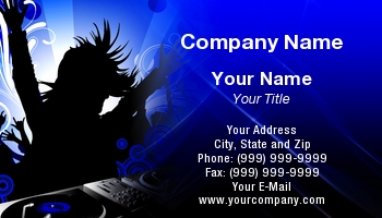 DJ business card great for a bar music dance club musician or disc jockey. (royal blue)