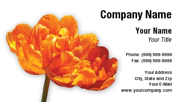 Double ruffle orange tulip floral business card set against white background great for florist, gardener, gardening, photographer, groundskeeper, beauty and nature lover. Pretty flower.