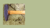 Upholstery with tack hammer and brass tacks