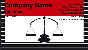 This card is for professionals in law or government such as lawyers, attorneys, judges, District attorneys, etc. A design of black horizontal stripes behind a red and white rectangular box. The lower two-thirds of the box is white and a has an illustration of a scales of justice in the center and upper third red area is for the text.