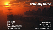 Illustration of dockside moorings at sunset with tall ships alongside.