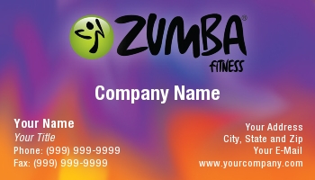 Colorful business cards with Zumba Fitness logo.