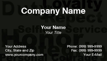 Beautiful Business Card Template of Army Values.