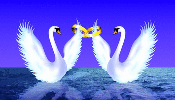 Swans in Love dancing in water wirh wedding or engagement rings digital illustration for wedding coordinator, event planner, bridal shop.
