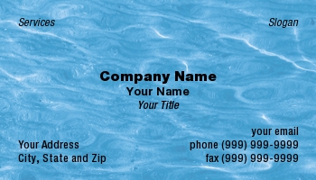 Swimming pool water business card great for pool cleaners, nature lovers. Sky blue.